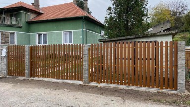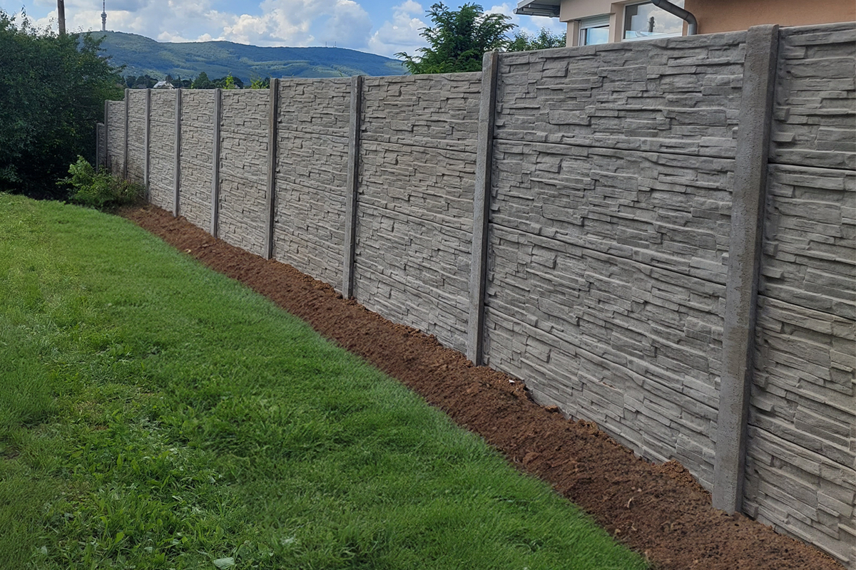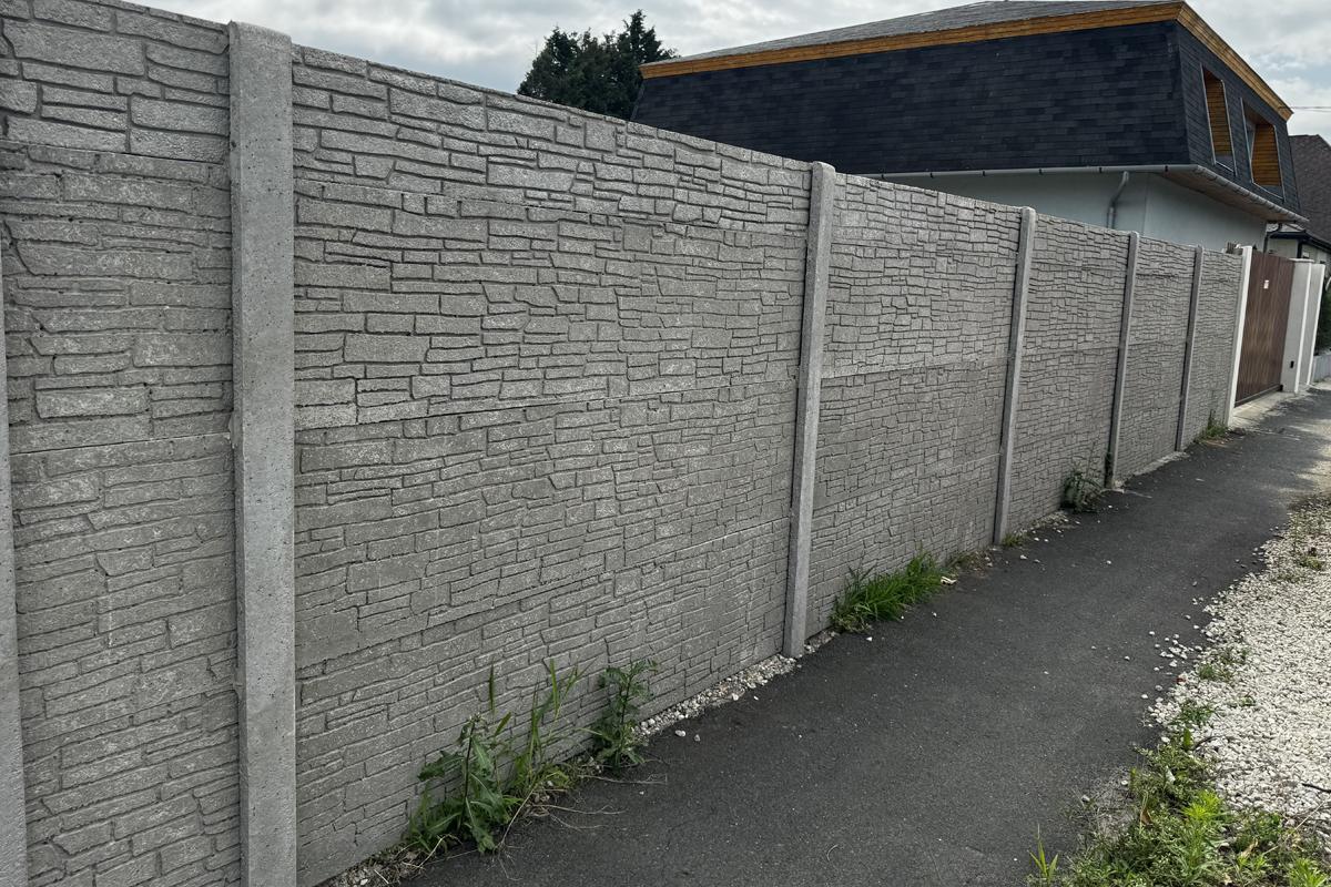 A 33/2 kő mintás betonkerítés felső íves beton elemmel