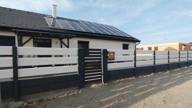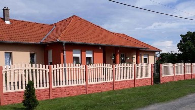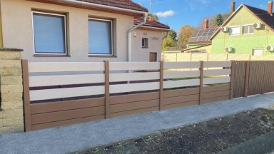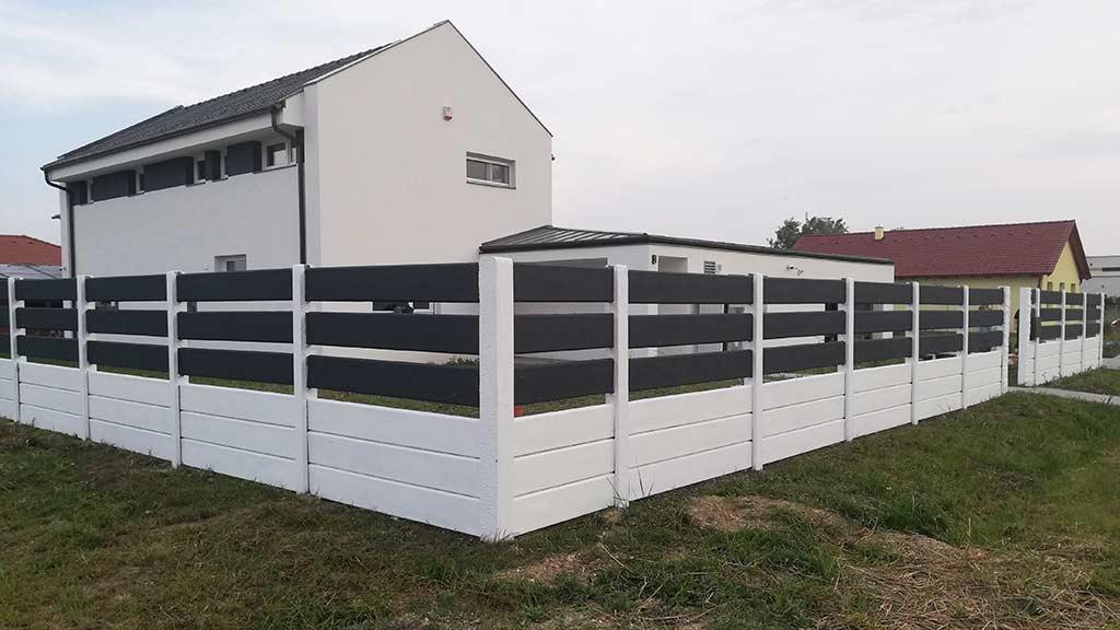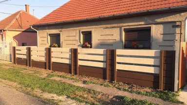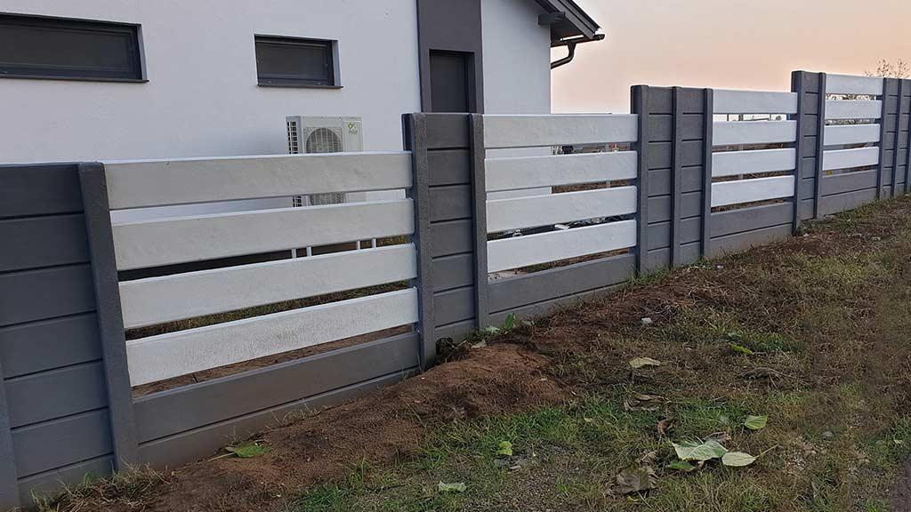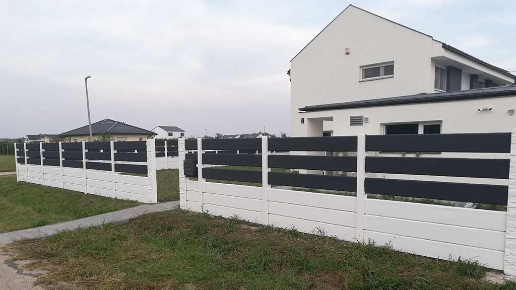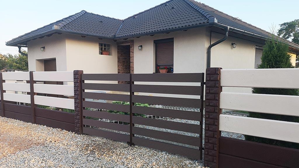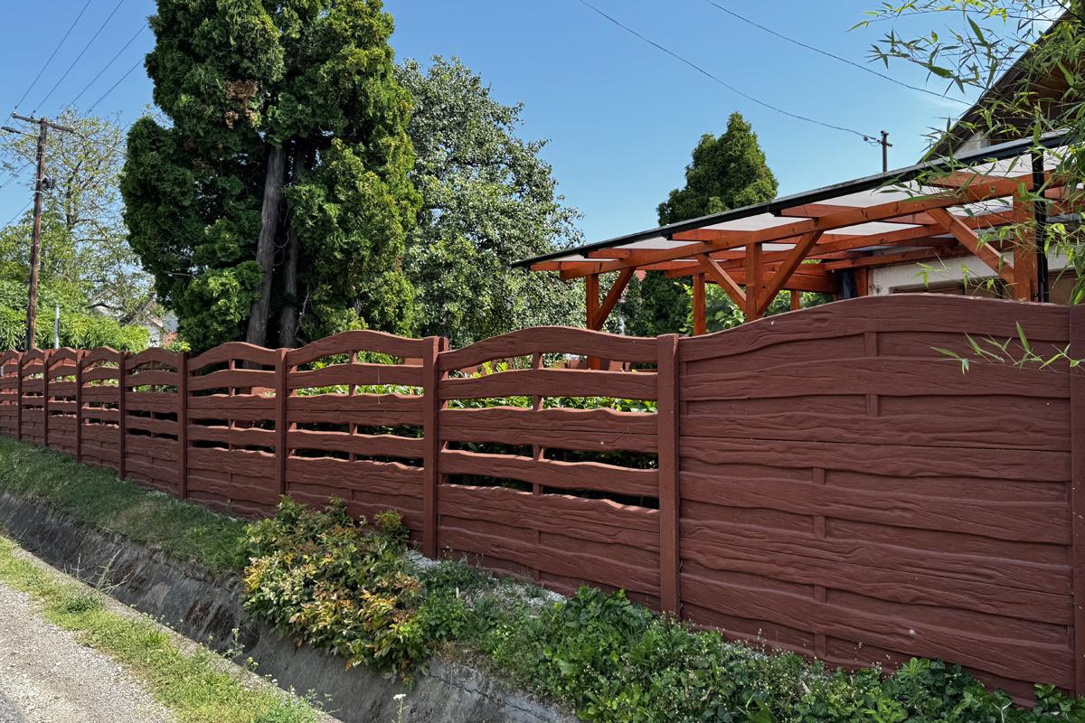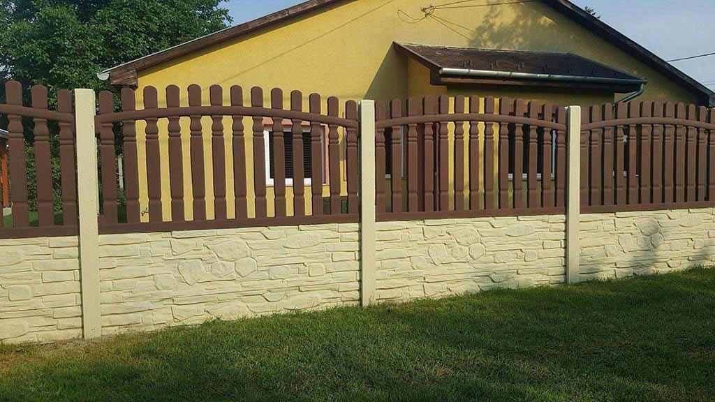 A23/7 típusú barna betonkerítés fehér betét elemekkel