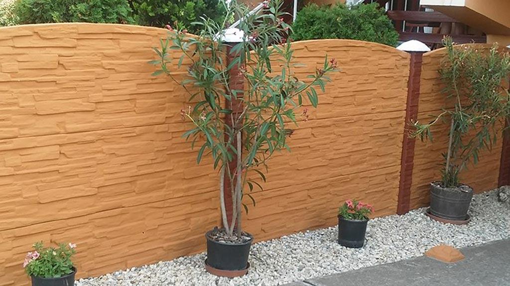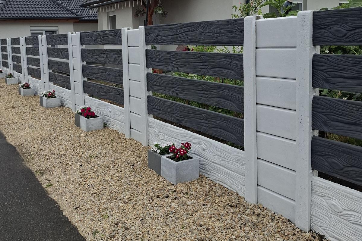 A 23/1 színes - famintás zárt beton elemes kerítés